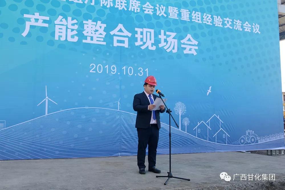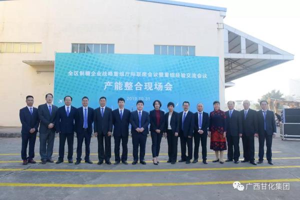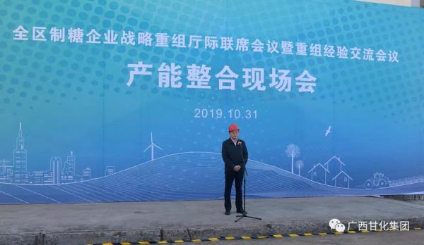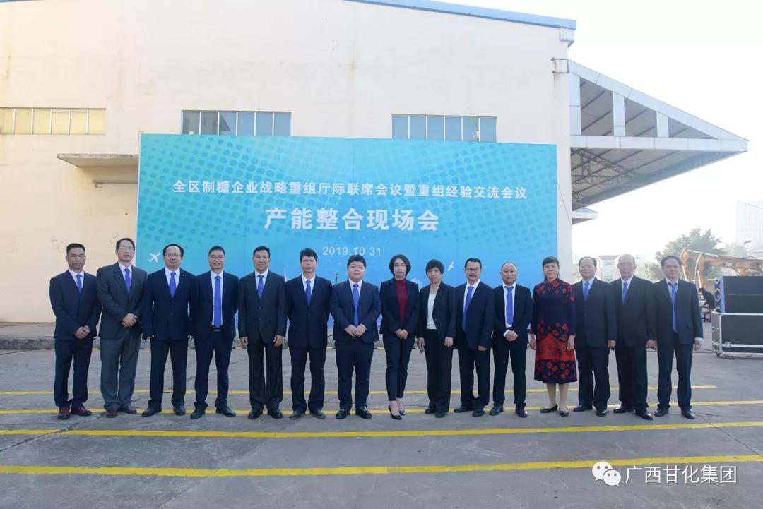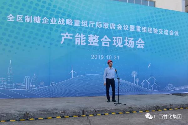 2019年10月31日上午9時,自治區制糖企業戰略重組工作廳際聯席會議暨重組經驗交流會議產能重組現場會在百色右江區甘化股份公司廠區內順利舉行。自治區糖業發展辦、發展改革委、工業和信息化廳、財政廳、人力資源社會保障廳、自然資源廳、生態環境廳、商務廳、國資委、市場管理局、地方金融管理局、廣西銀保監局、廣西稅務局、人民銀行南寧中心支行等區直部門和百色、南寧、貴港、欽州等產糖市主管部門,以及相關企業主要負責人等50余人出席了會議。