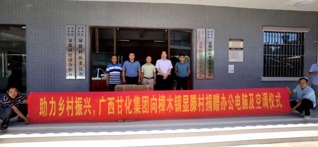 8月1日上午,廣西甘化集團有限公司向貴港市覃塘區樟木鎮顯滕村民委員會贈送辦公用品儀式在該村村民委員會辦公樓前舉行,樟木鎮黨委副書記譚宏義、貴港甘化股份有限公司劉曉東副總經理、顯滕村民委員會黨支部書記、村委主任郭慶杉出席了活動。