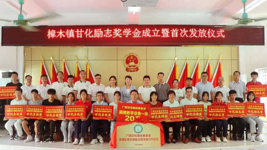 8月27日上午,由廣西甘化集團有限公司及其董事長夫婦作為發(fā)起人注冊的廣西甘化糖業(yè)基金會在覃塘區(qū)樟木鎮(zhèn)設(shè)立的甘化勵志獎學金成立暨首次發(fā)放儀式在樟木鎮(zhèn)政府禮堂圓滿舉行。